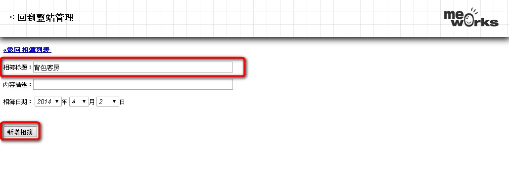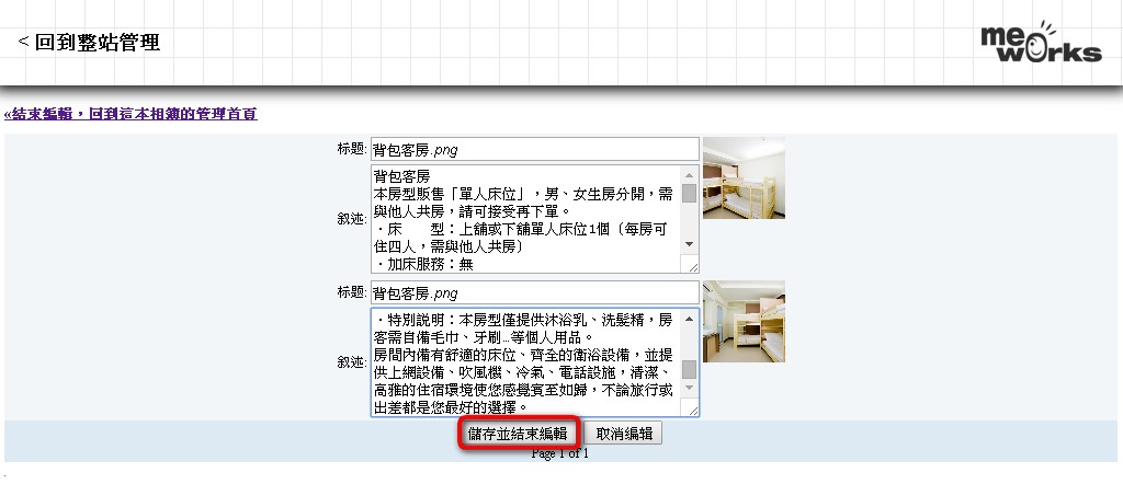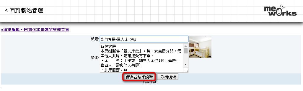 編輯圖片描述:完成圖片上傳後,進入此編輯畫面