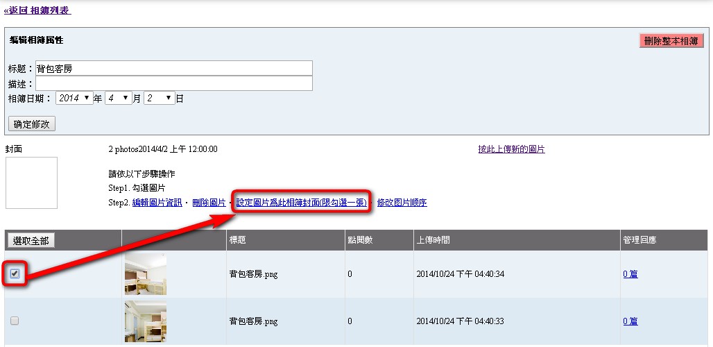 設定相簿封面:限勾選一張圖片設定為相簿封面。