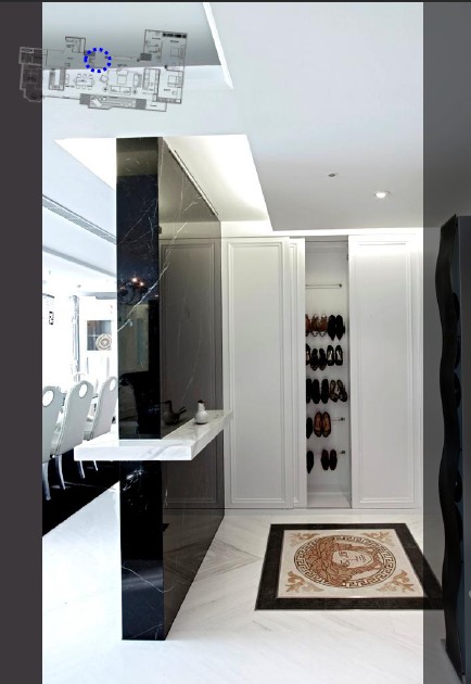 以某個族群概念來說,未來精品設計的元素與層面對「居家」這塊的影響是不容小覷的。室內設計一定會把所謂的「流行Fashion」設計帶到整個空間視覺的規劃裡面,不管是色彩材質或任何居家搭配採購一定少不了這個元素;所以精品的影響力,事實上已經進入我們的生活裡了。針對個案分享,把Fashion使用的色調,基礎白底、帶點銀、帶點金,讓作品富有奢華感,最重要的是,大部分的作品應該沒有看過藍色的作品,但在這個作品案例,我們可以見識到正藍使用,更突顯了此次作品的特色跟成功。