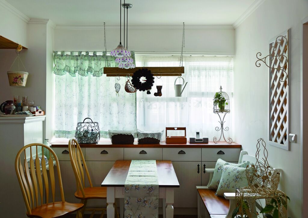 鄉村風格的構成主要是以原木和鐵件的搭配,再經由色彩調和,呈現出屬於個人特色的鄉村韻味,就像是此間住宅所呈現的高雅調性,結合淡淡的自然型態,添增一些柔美的女性色調,在總總的元素集結之後,構成一個完整的溫暖避風港,當然窗簾的巧妙運用,更為空間添增不少風采。