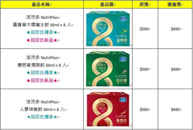 即日起至3/19凡至屈臣氏實體門市與網路商城/官方App購買《活沛多》東方八耀飲系列即可享原價8折體驗優惠,讓你在春季期間輕鬆補足營養,維持最佳狀態!