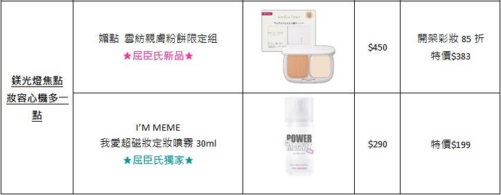 推薦商品:《媚點 雪紡親膚粉餅限定組》、《I’M MEME 我愛超磁妝定妝噴霧》、《ETUDE膜幻濾鏡透感唇霧》、《PERIPERA 極緻空氣感霧面唇釉》、《曼秀雷敦 Acnes痘痘貼》、《heme校色遮瑕盤》
