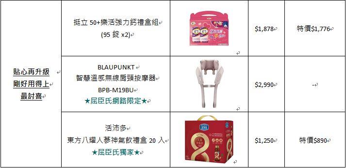 智慧溫感無線肩頸按摩器》、《活沛多東方八耀人蔘神氣飲禮盒》