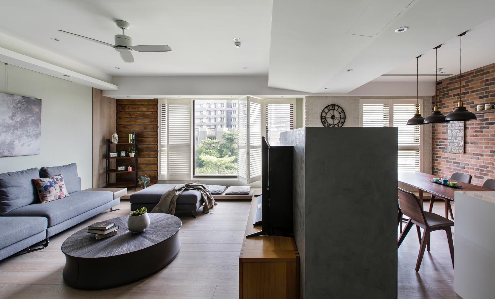 如何使家呈現明亮輕快的度假感?不追求精緻華美的飾材、捨棄不必要的固定式櫃體,完美落實減法生活或許是一個不錯的方向。此案設計以自然為出發點,透過現代語彙讓材料質地與周遭環境融為一體,並佐以自然採光鋪陳,堆疊出開闊明朗的空間調性,創造屋主期許擁有純粹的日常視野,此外更將屋主夫妻倆喜愛的混搭風格,用淺紋木地板輔以復古感的紅磚牆與鐵件中取得巧妙平衡,獨特品味形成一派,彷彿在這35 坪的空間施展魔法,讓每個角落都訴說著不凡的故事。