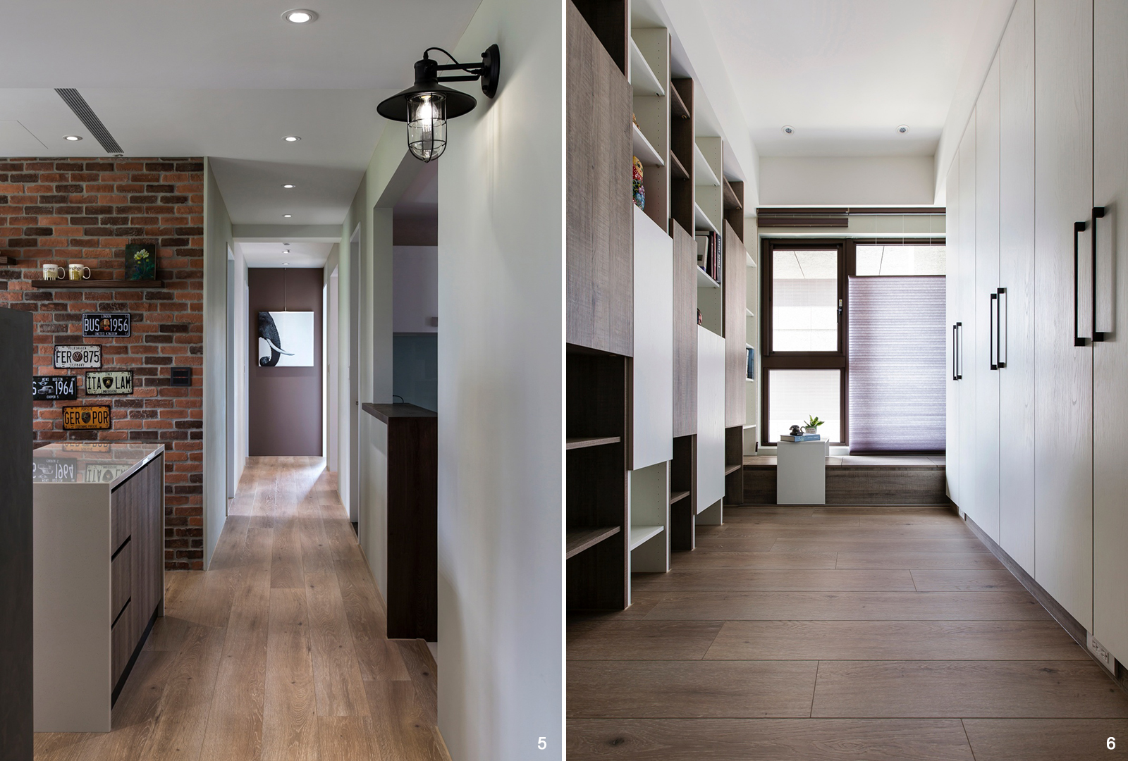 6. 廊道邊的櫃體打造容量超大的儲物空間,不僅可以收納各種各樣的物品,同時以古雅的造型帶來幽遠的氛圍。