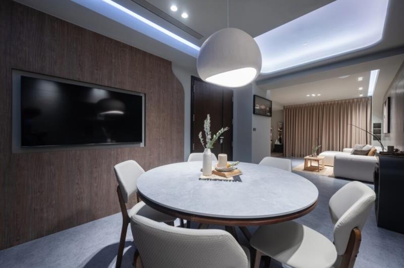 為了打造出舒適、健康且永續的宜居環境,本案除了以自然質樸的元素包裝空間之外,實際所使用的建材也皆為環保材料,譬如零甲醛、低甲醛的塗料與板材等,可大幅降低對人體造成的危害。另外,該住宅的智能中控系統有採用Apple HomeKit作為架構,從燈具、窗簾、冷氣再到換氣機等設備皆可透過手機進行遠端操控,不僅能提供業主一家享有智能、節能、安全、便利的生活,還能實現地球永續的目標。
