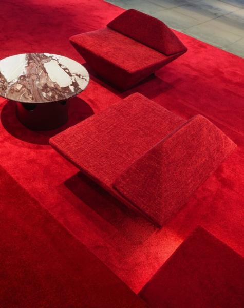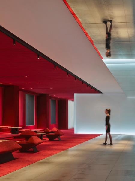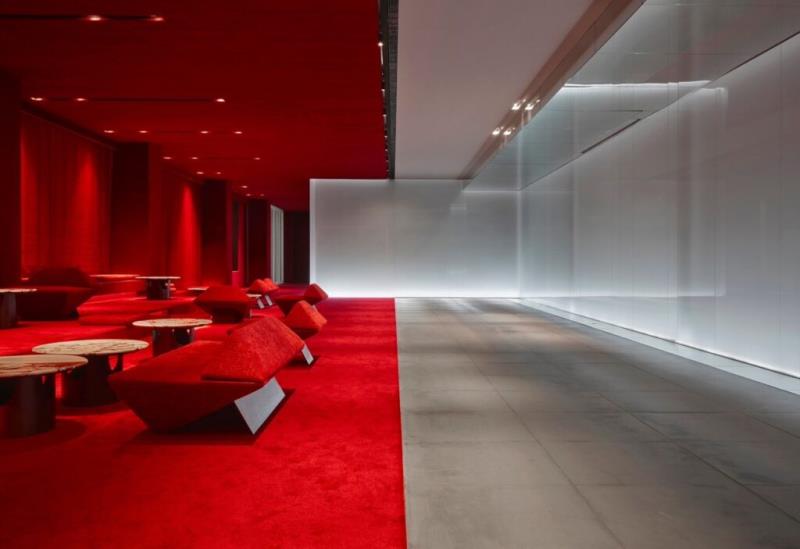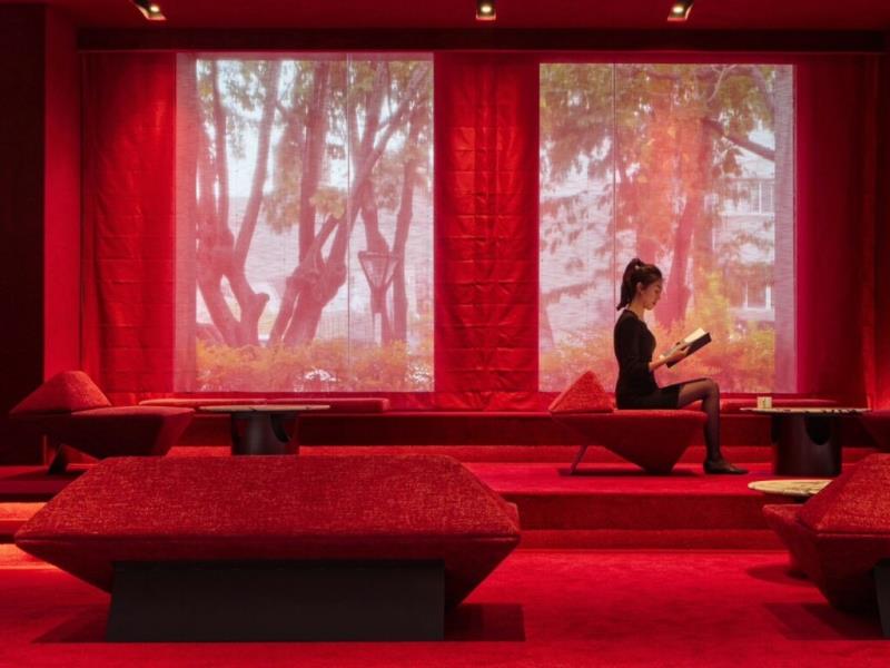 採用紅色軟性布料包覆空間,給予造訪者全新的視覺感官體驗。