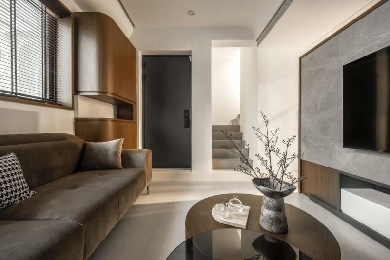 鑒於居者對於儲物機能的需求,本案在客廳、餐廳、和室與臥房等場域配置收納櫃,並善用畸零空間規劃開放式、懸浮式等多樣化的櫃體,不僅提供充足的儲物量,也帶來更多元的使用方式。客廳採用半高電視牆設計,除了有助於採光與室內空氣流通,亦避免高大牆面的壓迫感,塑造開闊、敞亮的視野,提供居者放鬆身心的休憩場域。