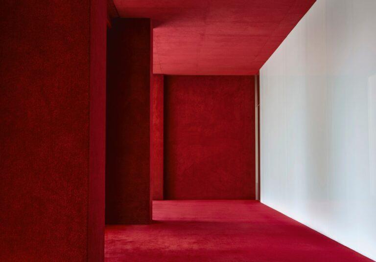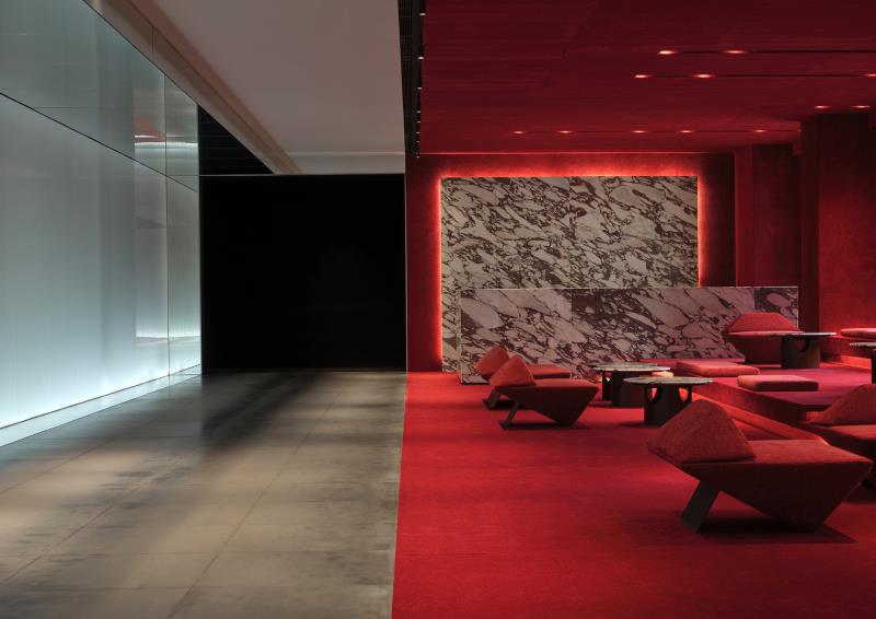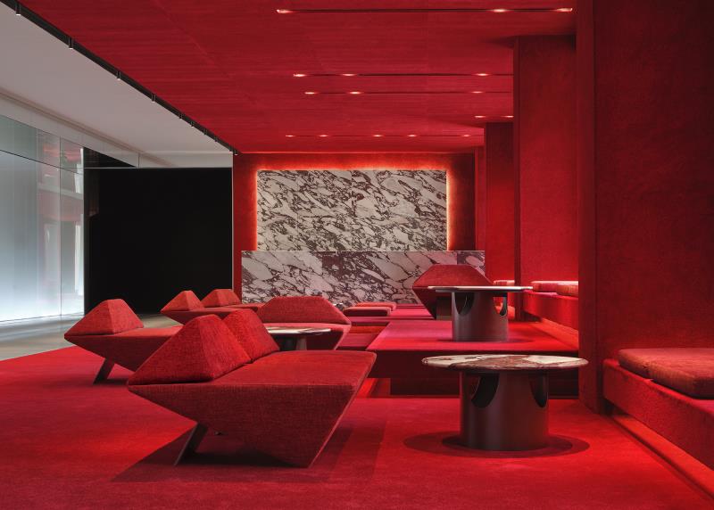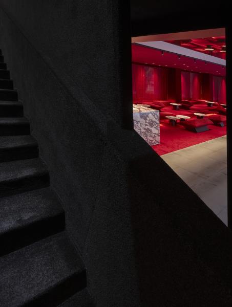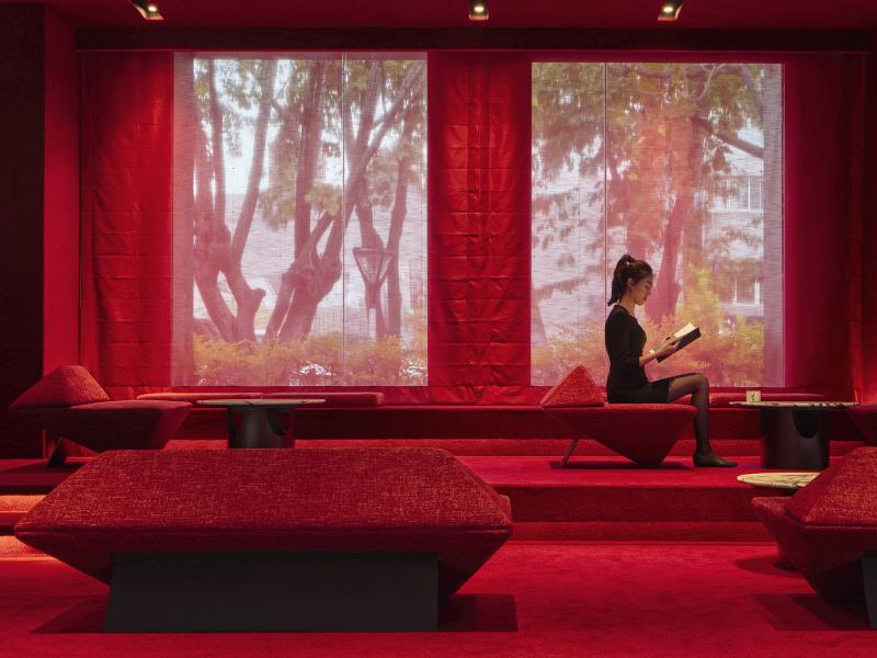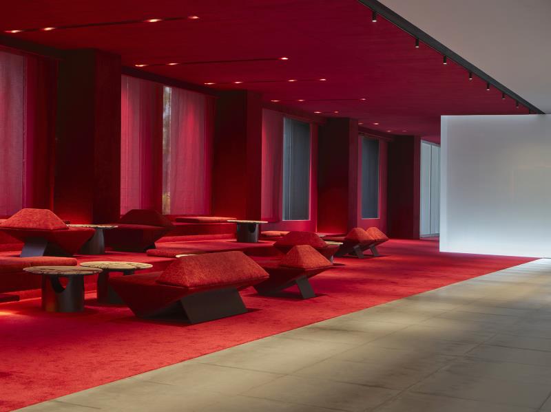 採用紅色軟性布料包覆空間,給予造訪者全新的視覺感官體驗。