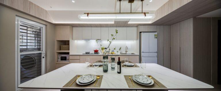 無痕收納:全室採隱藏式與按壓式無把手櫃體,營造出整齊純淨的空間氛圍。