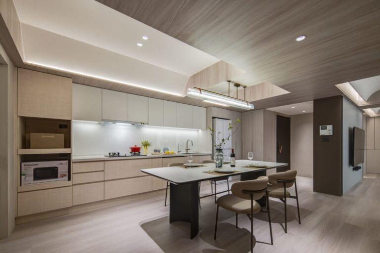 細膩材質與收納細節彼此呼應,於開放通透的空間裡,形塑柔和雅緻的居家氛圍。隱藏式櫃體與圓弧線條相映,創造純淨流暢的視覺節奏,融合永續用材思維,回應當代生活需求,亦呈現宜居且具有格調的現代住宅樣貌。