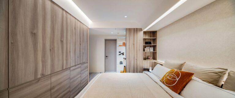 隱藏設計:臥室入口巧妙融立面設計,維持整體空間一致性。