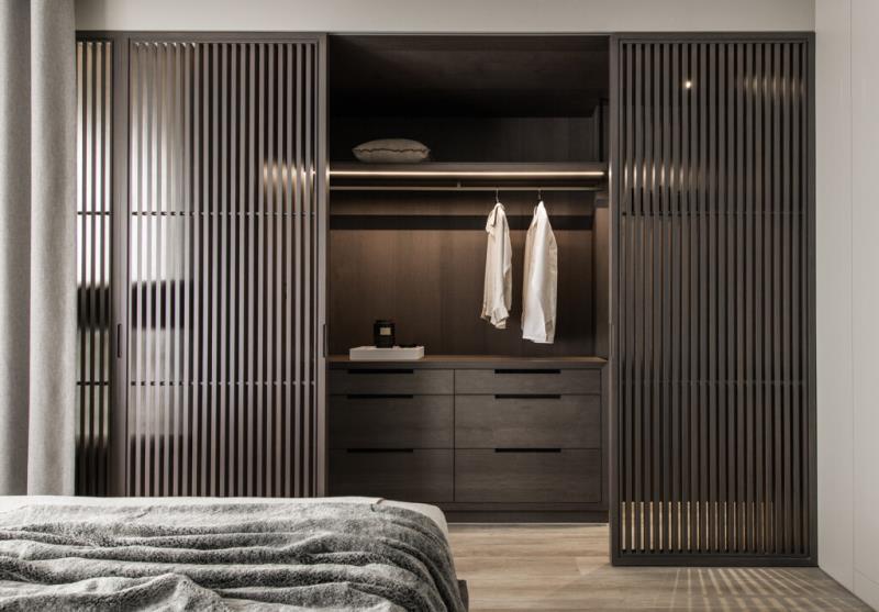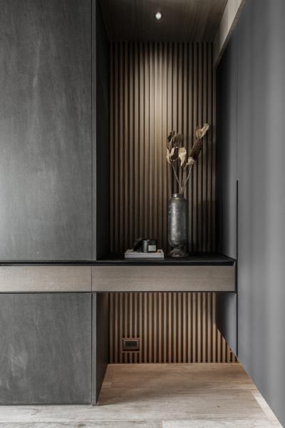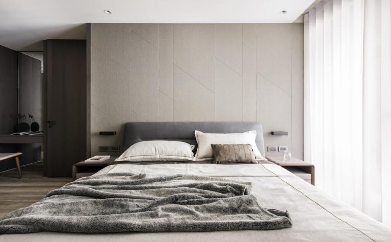 本次設計專注於提升屋主的生活體驗。團隊先是將全室的門與壁面做整合,利用簡約的線條、無門框的設計創造純粹的空間感,再利用紗簾、木百葉的配置增加場域的通透感,為居所形塑隱密且寧靜的氛圍。透過減少不必要的裝飾,讓生活空間化為冥想的容器,提供屋主ㄧ個有益於身心健康的居住環境。