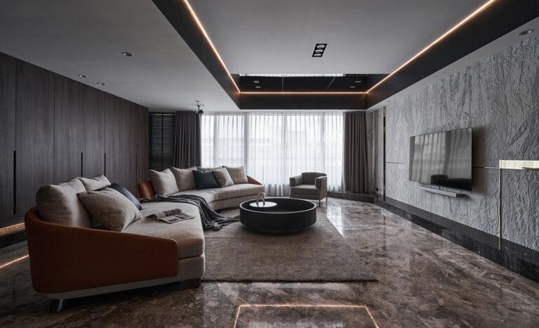 在材料選擇與設計手法上,本案充分展現了對環境永續的重視。首先,公、私領域均設有對外窗以增加室內採光,再搭配省電LED燈具的設置,能大幅提升節能減碳的成效。接著,採用大量的環保材料,包括取得綠建材標章認證的美耐板、石材薄板及低VOC塗料等,降低施工對環境造成的衝擊。藉此,滿足屋主對理想居所的期待之餘,又能為奢華住宅提供環保永續的設計方案。