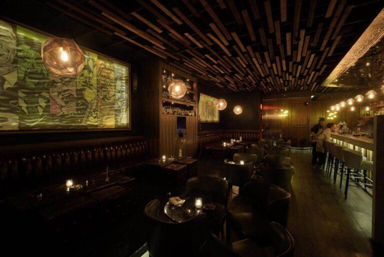 《上海enigima》不以堆疊裝飾彰顯風格,而藉材質紋理、光影語彙與結構節奏,緩步描繪出一座沈潛的空間世界。從不規則懸浮木構天花,到鍍鈦金屬與玻璃交織的主吧檯,最終至皮革與石材交錯的質地層次,每一隅轉折皆蘊藏時間的細語。本案於復古與工業語境間穿梭,於理性構築中納入情感語感,亦為老屋翻新與商空設計注入寧靜與別緻的當代表現。