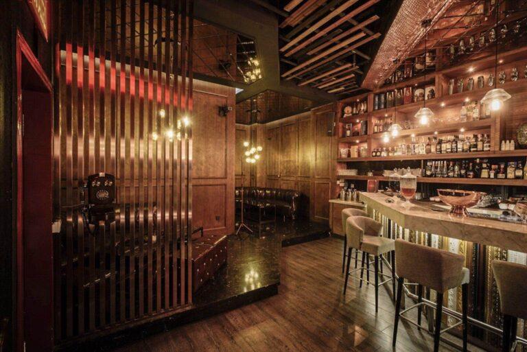 隱身於上海街廓的一幢老屋,經遇見設計之手重塑新生,以復古情懷交融工業語彙,編織出沉潛靜謐的空間詩篇。本案運用天然木皮、鍍鈦金屬、特殊玻璃與皮革等異材質交錯堆疊,鋪陳出層次豐盈、質地深邃的酒吧場域。全室環繞墨綠與棕色調,黃銅燈飾散發內斂暖光,不規則木構錯落於天花之上,光影折射間映照復古工藝的張力。不僅為老屋裝修與中古屋翻修實踐細膩轉譯,更凝鍊出遇見設計於商空設計、豪宅設計與別墅室內設計中的深厚美學,亦為現代透天厝外觀設計注入風格與實用兼容的當代表述。