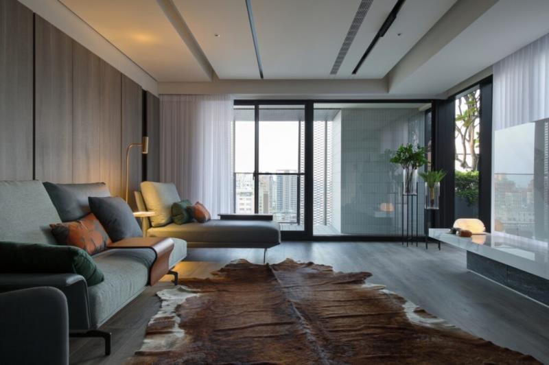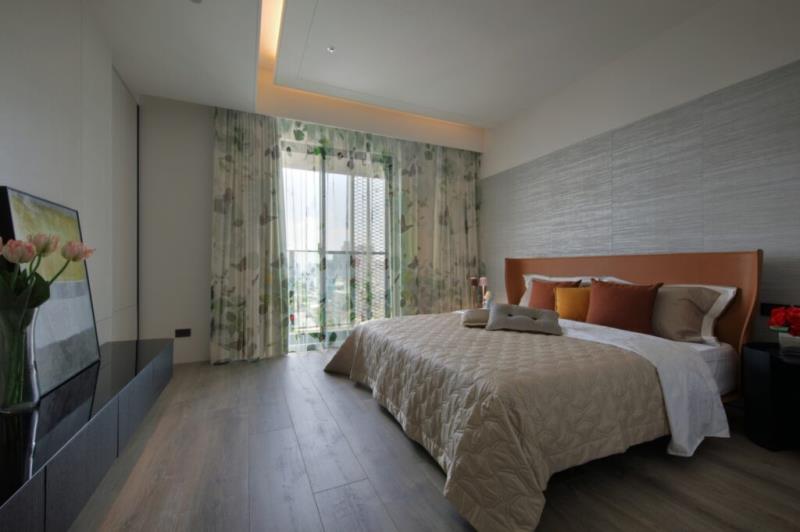 在材料選擇與設計手法上,本案充分展現了對環境永續的重視。首先,最大化保留對外窗的設置。既能將自然光和綠意更全面地援引入室,營造清新舒適氛圍,又可增加室內通風和採光,降低燈具與空調的使用頻率,實現節能減碳之目標。接著,選用低甲醛的環保板材,以減低施工對環境造成的衝擊。藉此,落實「人居健康」、「生態健康」、「人本健康」、「地球永續」等四大環保精神,讓居者在親近自然的休閒居所中,享有靜謐、放鬆的心靈感受與健康生活。