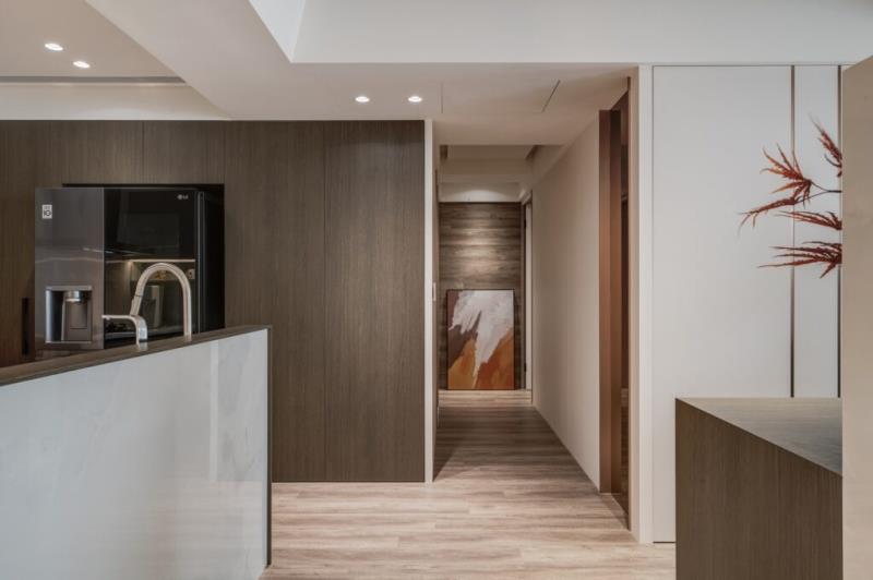 - 視覺鋪敘:以天然木皮包覆立面與櫃體,形塑溫潤氛圍。