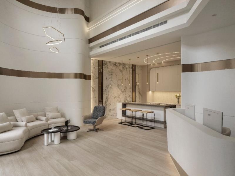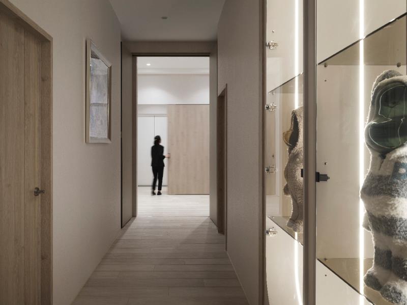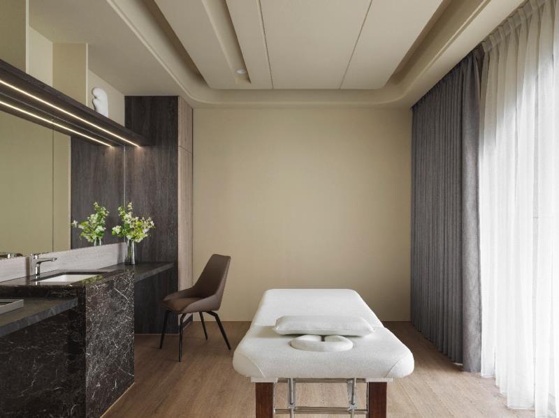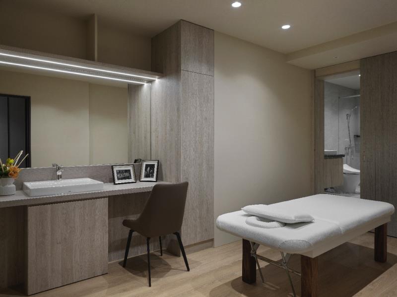 甫入接待大廳,設置大面落地窗將戶外的自然光景引進室內,以緩解訪客候診的焦慮感。其中,內部牆面多採弧形曲面設計,能有效消弭空間的冷硬感。另外,在等候沙發區的一側,團隊別出心裁地增設了具備餐廚機能的吧台區。這不僅能讓訪客感到賓至如歸,還能為院方的工作人員提供便利的烹飪場所。另外,為呼應診所的品牌形象,每個功能區皆以簡約、明亮的設計作為空間主軸。包括選用的色調以中性內斂為主、傢俱型態以幾何造型為主,以此彰顯自然、俐落的美學底蘊。值得一提的是,治療室皆為獨立隔間,並分為單人、雙人與VIP使用,能保障每位訪客的隱私與安全,避免傳統治療室僅用布簾劃分造成的窘境。