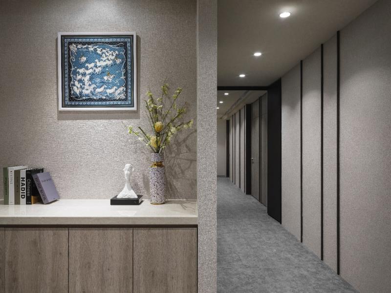 此次的診所設計,除了著重營造舒壓的候診氛圍之外,團隊對於安全、環保層面也不馬虎。首先,從配置大面落地窗引進充沛的自然光,再到省電LED燈具的使用,皆可大幅降低電力耗損,達到節能減碳的效果。接著,選用抗衝擊能力強的大理石紋薄板磚和超耐磨木地板,以降低自然資源的耗損。另外,使用防火、防潮、防霉、防蛀的綠建材構建天花板。其具備100%不含石棉及甲醛、不會產生有毒物質和氣體,以及不含放射性物質的特點,既不會對人體造成傷害,亦不會造成環境負擔。藉此,不僅能給予醫師、訪客舒適、健康、安心的使用環境,又能實現愛護地球的目標。