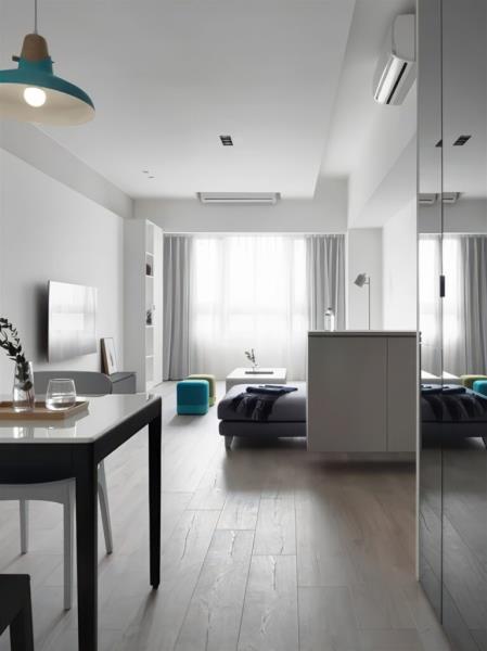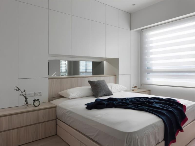 - 收納佈局:系統櫃體化整於牆,隱藏收納機能,維持視覺純淨。