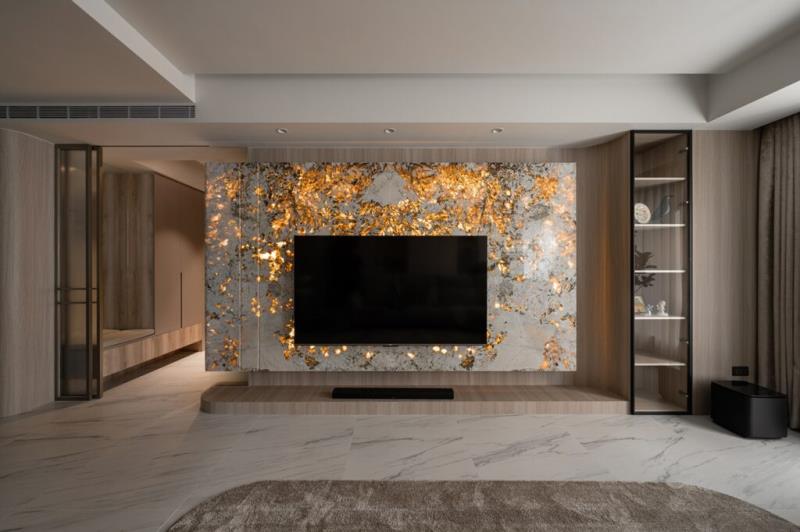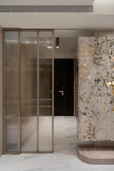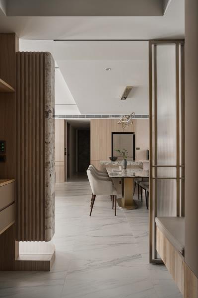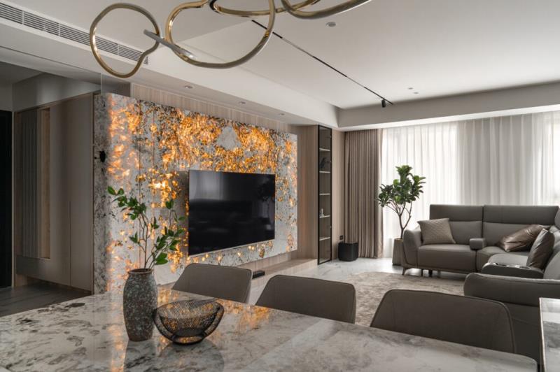 本案榮獲 2025 義大利羅馬設計獎 Rome Design Awards - 金獎。本案以「輕奢而內斂」為設計核心,將毛胚屋化為雅緻居所。材質選用大理石材、消光鍍鈦、淺色木紋與低飽和色系,形塑優雅溫潤的氛圍。客廳電視牆為設計亮點,透光大理石搭配隱藏燈光,可調節色溫與色調,並以懸浮及圓弧細節處理,呈現輕盈與層次。整體設計透過材質比例與光影掌控,建構出內斂而不浮華的生活場域。