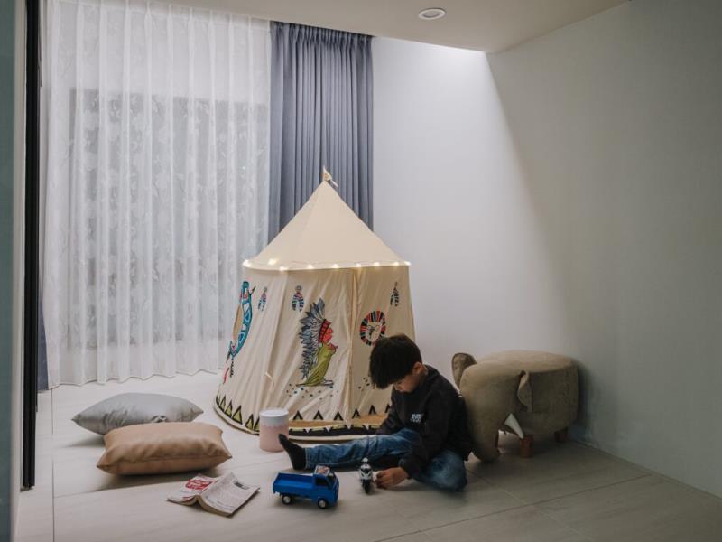 本案榮獲 2025 美國繆斯設計獎 MUSE Design Awards – 銀獎。本案為私宅規劃案。考量到家中孩童的舒適與安全性,設計師以開放式手法進行佈局,不僅帶來寬闊的活動空間,也能讓孩童維持在屋主的視線範圍中,發生任何突發狀況皆可即時反應。迎合屋主的使用需求,設計師為其量身定制完備的系統家具,在節省空間的同時,亦提供充足且靈活的機能性。此外,由於臺灣氣候較為潮濕,本案還設有全屋式除濕機,大幅改善濕度過高的問題。同時,透過其中配置的PM2.5前置過濾裝置,也可改善空氣品質與人體過敏反應。