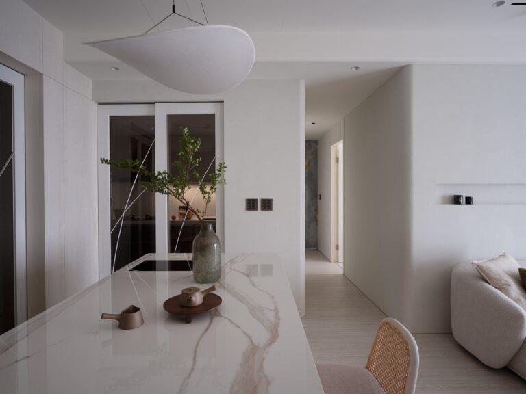 本案榮獲2025 美國繆斯設計獎Muse Design Awards-金獎 。本案為私宅規劃案。考量到格局較為狹長,設計師選用柔和的曲線條,並結合適當的收納系統,打造兼具美觀與實用性的居所。由於牆面、天花板大量運用圓弧造型,故採用現代的3D建模技術,藉此確保所有接合處的精確度。此外,本案還導入智能化家電設備,可透過手機或語音輕鬆調整照明、空調等,提升日常的便利性之外,亦達到環保節能的效果。