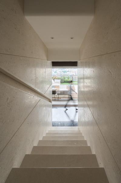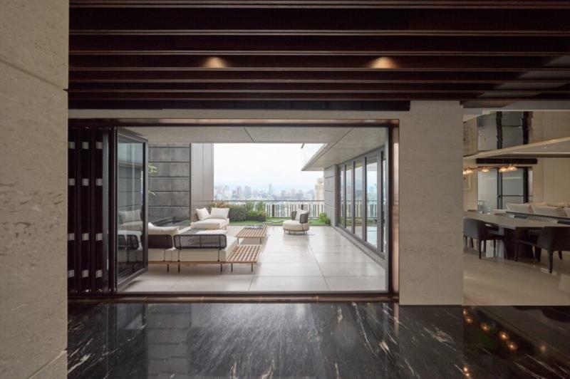 公領域運用各式建材堆疊出豐厚的層次感,從萊姆石地板、米洞石牆到木作格柵天花板,讓性質迥異的質感和諧共存,構成獨具個性的室內景致。此外,設置植栽景觀的戶外露天陽台,不只具有遼闊的都市景緻,還提供一處寬敞明亮的休憩空間。本案藉此帶給居者絕佳的舒適度和幸福感,成為讓人沉澱身心靈的夢想居所。