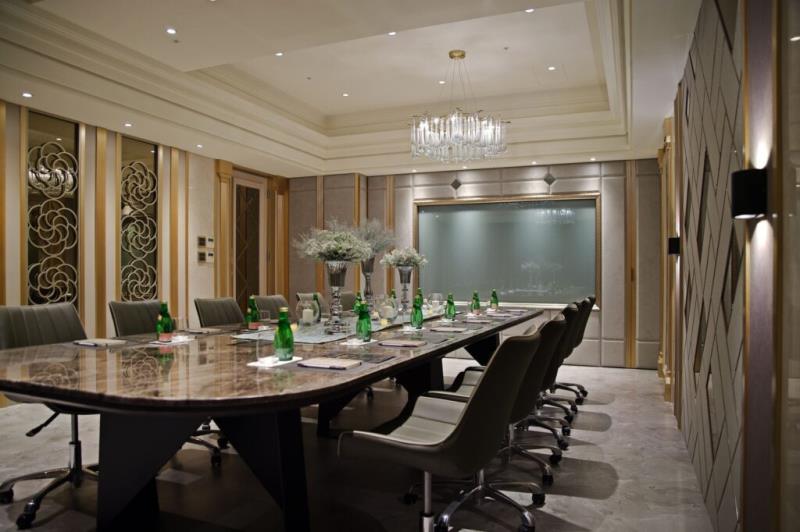 - 華燈細語:垂掛吊燈細緻灑落晶光,烘托靜謐而尊貴的會談氛圍。