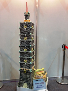 二、「創意烘焙主題館」:小時候您一定有吃過一款簡單小巧的小西點,圓圓的造型、有紅色、黃色、咖啡色,在當時物資匱乏的年代中,那是最令人回味的甜美記憶,這個風靡超過一甲子的小點心,就是我們本次大展的主題商品,我們稱它作「台式馬卡龍」。在創意烘焙主題館內,將會展示全台獨一無二,由君城蛋糕黃萬雄師傅耗時多日,用多達5000顆台式馬卡龍而打造成的台北101,另外還有本次烘焙展的鎮展之寶【金龍獻瑞】巨型藝術麵包,由85度C李欣然師傅,耗時兩個多月的工作時間,以上百顆的台式馬卡龍打造出氣勢磅礡、栩栩如生的巨型藝術麵包【金龍獻瑞】。除了兩座結合新食尚的藝術品外,2012加州葡萄乾&加州乳酪烘焙大賽的入圍店家作品,也將在本主題館展出;此外,來自全省烘焙名店以加州葡萄乾和加州乳酪為主要素材,精心研發的創意麵包與西點作品,都將一併展示於2012創意烘焙主題館,想知道加州葡萄乾運用在烘焙世界的千變萬化以及無限的創意,駐足停留此區片刻,絕對會有意想不到的收穫。