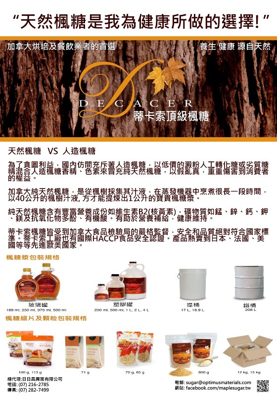 【世貿展成果發表專區─養生及健康,源自加拿大蒂卡索頂級純楓糖 】